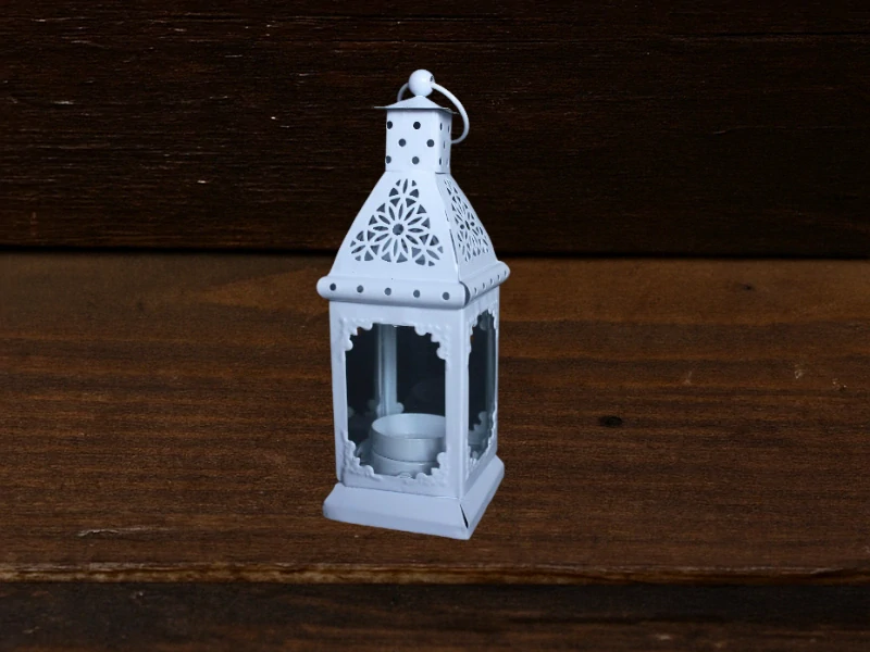 Lucerna bílá, 18cm, materiál: kov, sklo